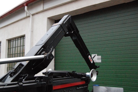 Hákový nosič kontejnerů HYVA umožňuje nakládání, vykládání a sklápění kontejnerů směrem vzad. HNK je opatřen zadním hydraulickým opěrným válcem. HNK naloží kontejner s celkovou hmotností 8t, s délkou až 4800mm a výškou háku 1570mm.